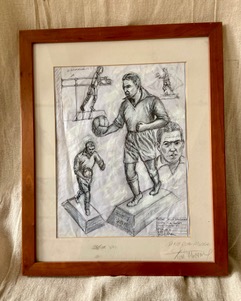 Detailed study with arms and the football held closer to chest than in the finished work. One off collectors edition.